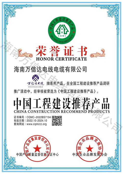 中國工程建設(shè)推薦產(chǎn)品榮譽證書